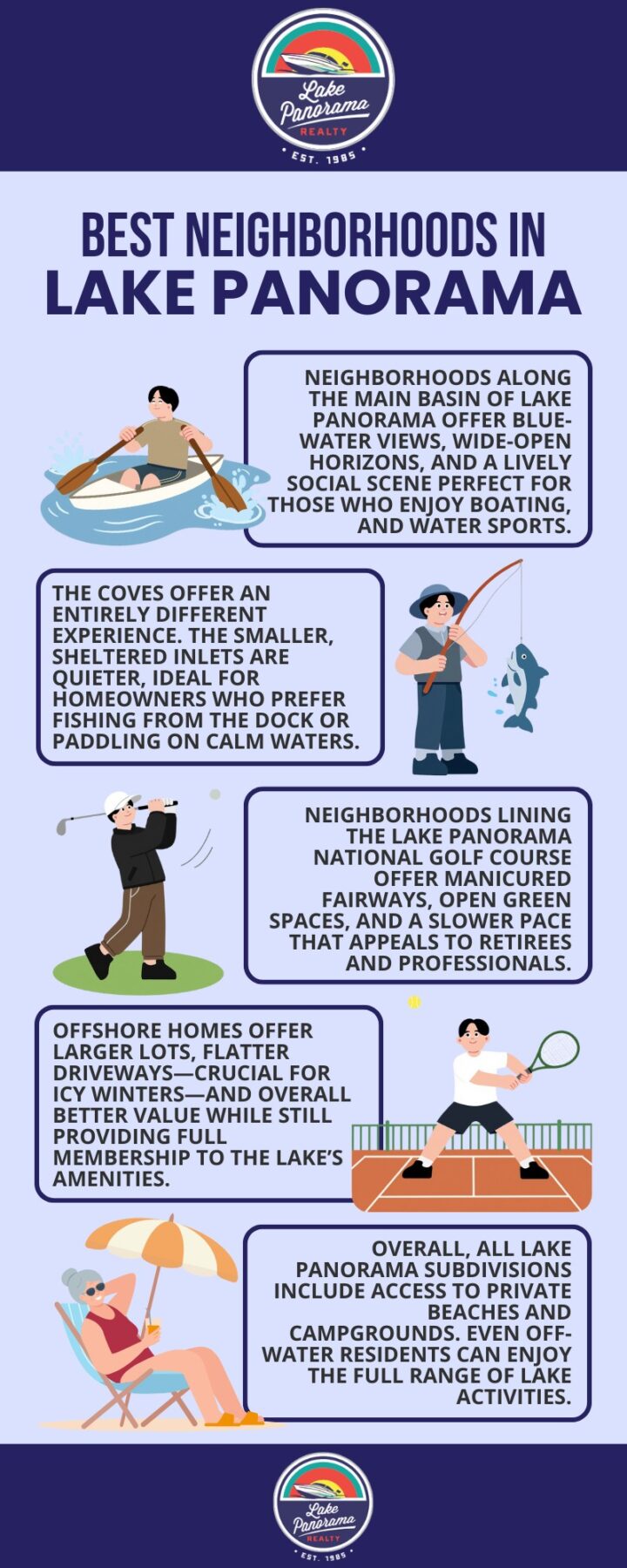 Whether you’re drawn to the social energy of the main basin, the serenity of the coves, or the quiet charm of the golf course, Lake Panorama subdivisions offer a variety of options that cater to every lifestyle.